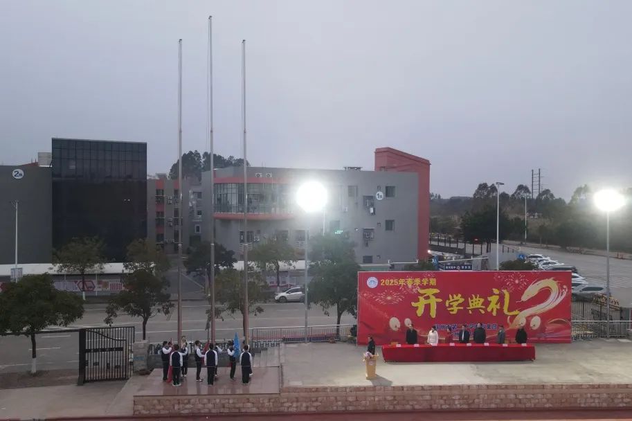 清晨的雾气还未散去,庄重肃穆的升旗仪式拉开了开学典礼的序幕,护旗手迈着整齐有力的步伐,护卫着五星红旗和校旗走向升旗台。随着激昂的国歌声响起,鲜艳的五星红旗在微风中冉冉升起,全体师生面向国旗行注目礼,高唱国歌,眼神中满是对祖国的热爱和敬意。