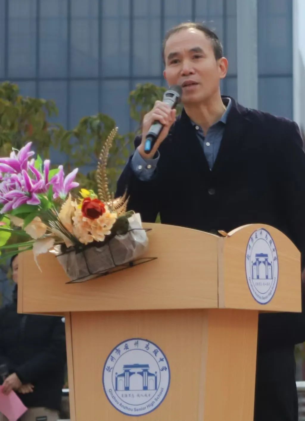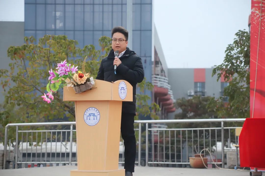 随即由钦州市第二中学工会主席许其杰致辞。少年无一寸光阴可辜负,学子有满怀壮志展宏图,许主席希望同学们能够在这天时地利、人才荟萃、芝兰并茂的校园中开启新学期,不负心中的热爱逐梦绽芳华,脚踏实地,努力奋斗。