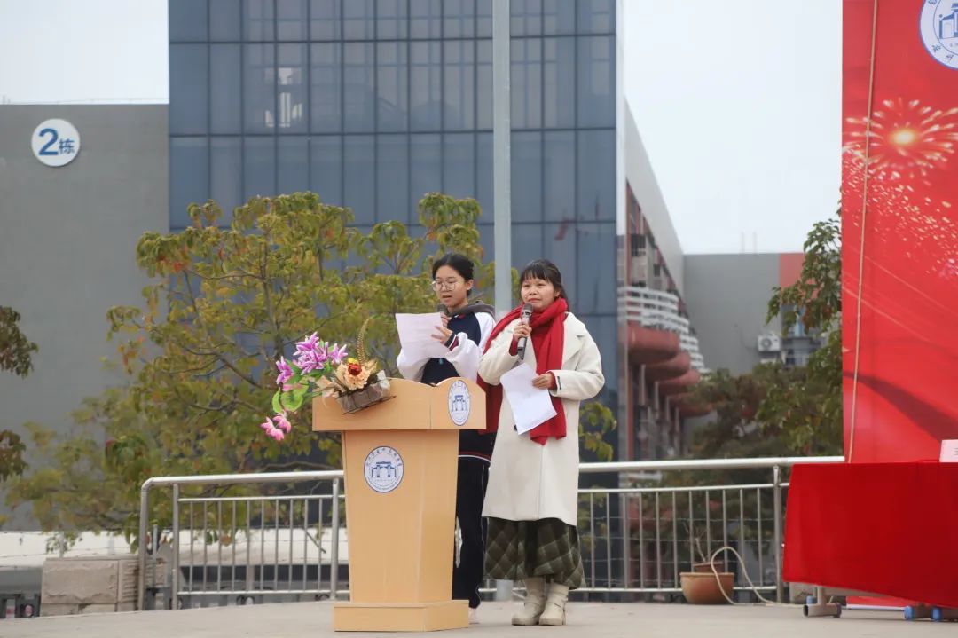 开学典礼第四项为高三(5)班班主任王琳老师及学生谢雨芮上台发言。她们的身影代表着我校充满活力与希望的群体,她们的言语传递着师生共同的心声,新的学期是新的挑战,师生们不会畏惧,不会迷茫,将会一起,共赴新程,一路向阳。